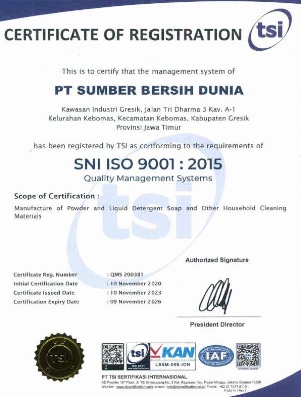 - Bahan baku yang digunakan untuk memproduksi deterjen hanya bahan baku yang biodegradable yang ramah lingkungan (ketika limbah deterjen dialirkan ke sungai, bisa segera diuraikan, sehingga bisa kembali ke alam).